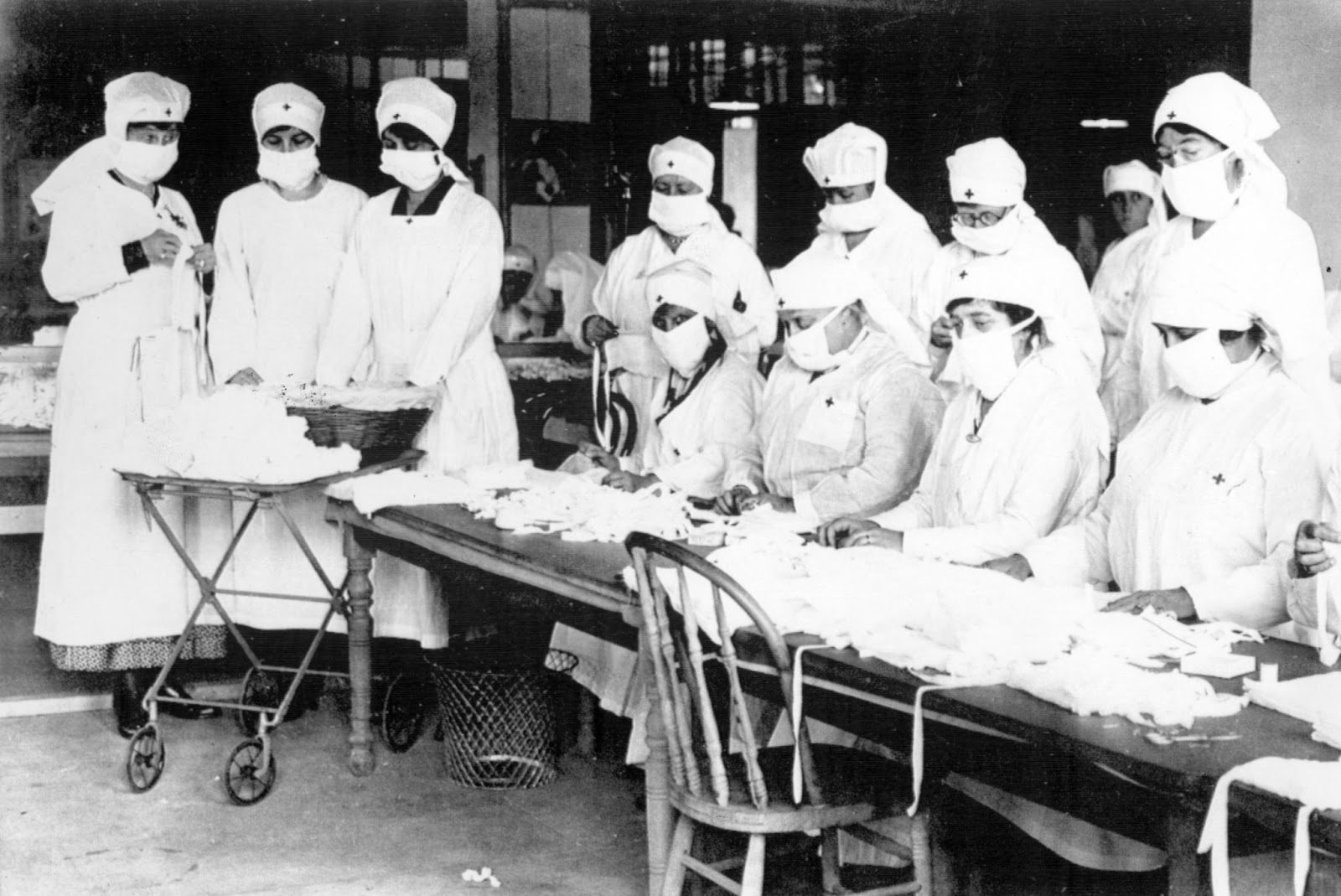 The mass mobilization during World War I triggered the flu outbreak, which rapidly spread worldwide. A lot of young people left the country, contracted the disease and then brought it home.